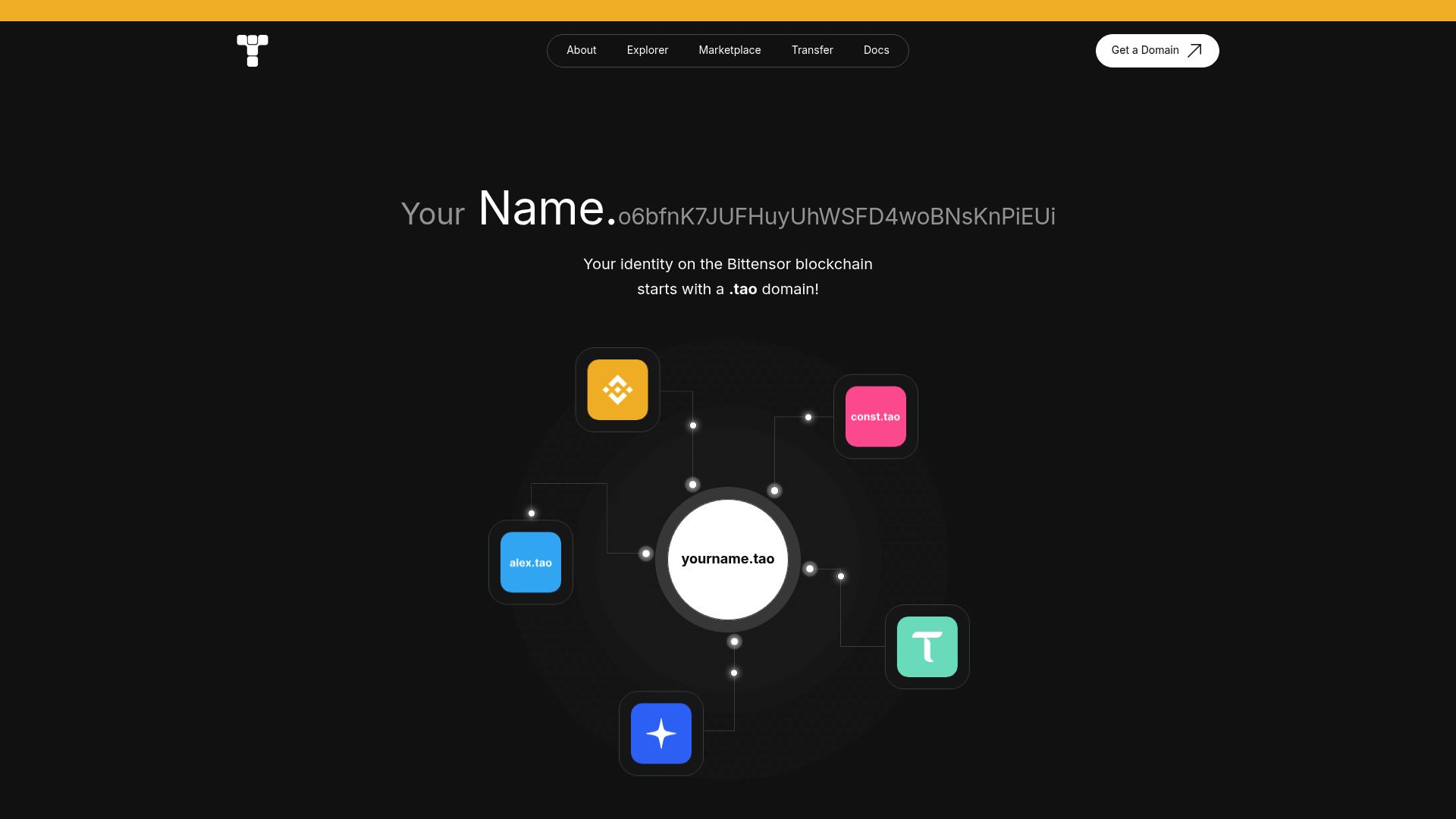 Human-readable .tao naming system for Bittensor wallets and on-chain identities.